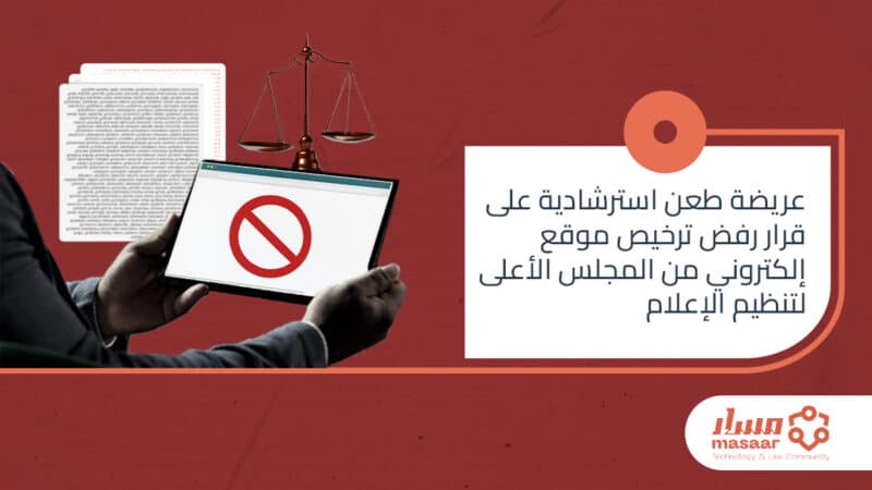 تُقدِّم مسار هذه العريضة الاسترشادية التي يمكن الاستعانة بها في الطعن على قرارات المجلس الأعلى لتنظيم الإعلام برفض منح الترخيص لمواقع إلكترونية. وتهدف العريضة إلى تقديم نقد وتحليل لنصي المادتين (6) و(105) من قانون تنظيم الصحافة والإعلام، واللتين تُجرِّمان إنشاء أو إدارة موقع إلكتروني دون الحصول على ترخيص مسبق من المجلس الأعلى لتنظيم الإعلام، كما تُقرِّران عقوبات مشددة تتراوح بين الغرامات المالية الباهظة والغلق والمصادرة كعقوبات وجوبية.