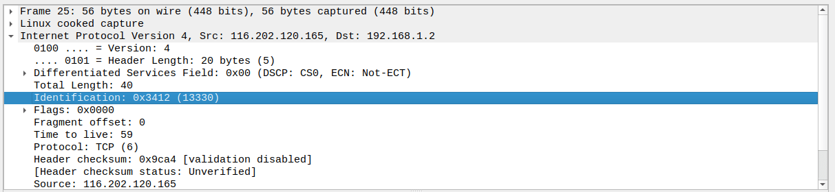 Citizen Lab had published a report on the use of PacketLogic devices, and the report indicated that the field (IPID) always bears the fingerprint “13330 (0x3412)”, and this fingerprint matched the one found by Citizen Lab researchers for one of the the PacketLogic devices they purchased.